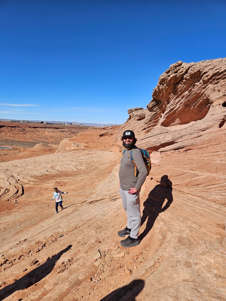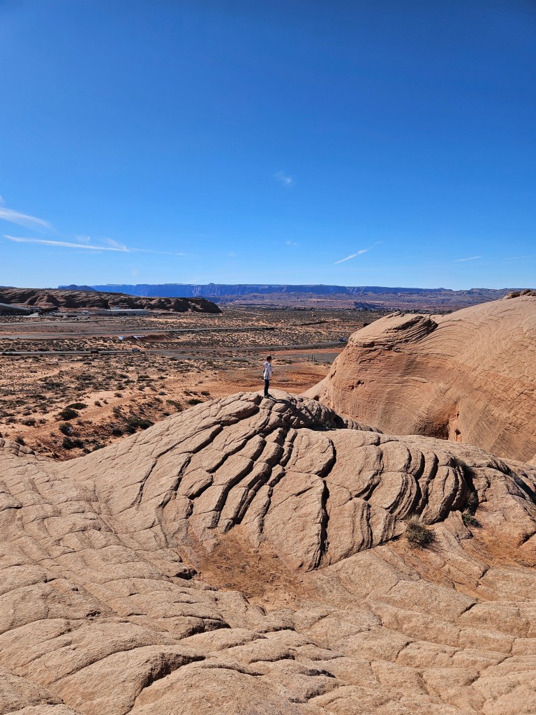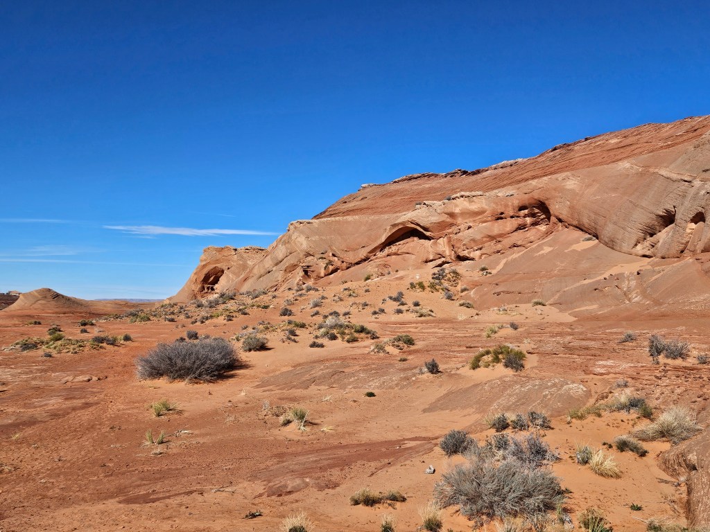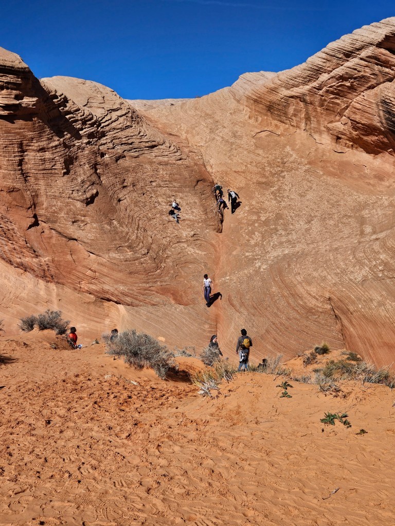 Our second stop on our journey to Page, AZ was the Shell gas station. Yes, a gas station. They had a lovely parking lot where we could park all of our massive dually trucks and enjoy a quick picnic lunch. Once we finished our lunch (pb & j sammies with chips for our family), we were more interested in what lay behind us than the gas station in front of us. After hiking for about two minutes we came across The Big Lake Sand Cave, also called Biidi the Arch, or Shell Cave. This was BEAUTIFUL and crazy to think it’s right behind the gas station! The sand is a rich rust color and the sky when we went was a vibrant blue, making the photo opportunities perfect.