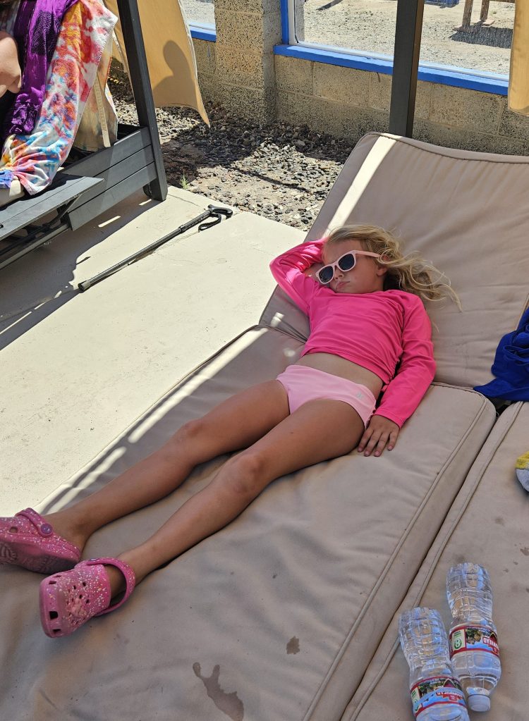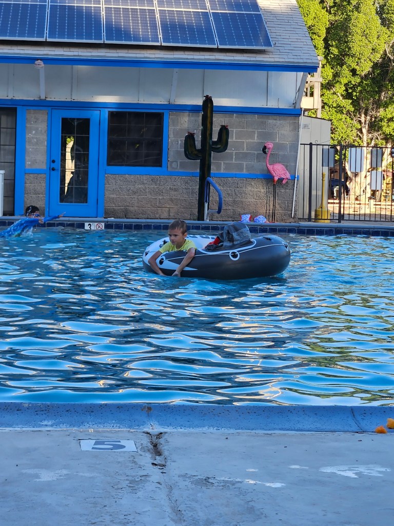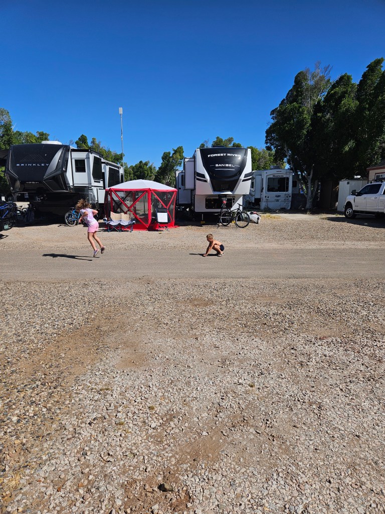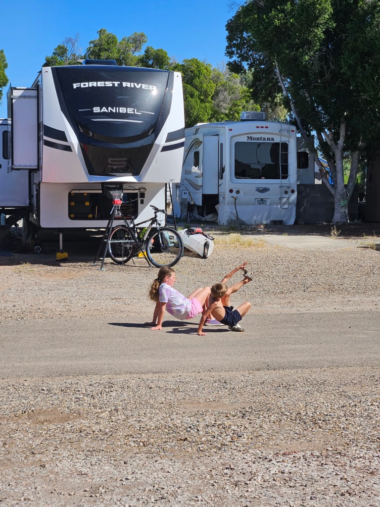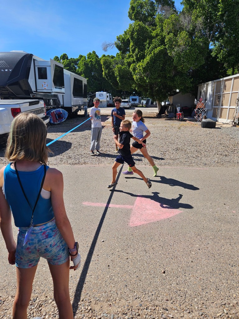 It’s been a while since I’ve posted because we’ve been having so much fun! We attended the Fulltime Families West Coast Reunion in Winterhaven, CA this past month. It was a week of hot sunshine (record setting temps up to 108°), crafts, pool time, and time spent with friends. A small group of us did exercise workouts on a regular basis (yes, we’re crazy for doing outdoor workouts in the 100+ temps). Kai and a few other kids came to join us throughout the week as well. The big kids also planned a race for Pokemon cards, which Kai won!